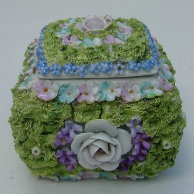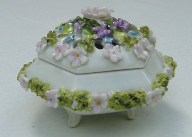 ELFINWARE/SCHNEEBALLEN POWDER JAR with Ormolu decoration.Marked "GERMANY" Excellent condition.